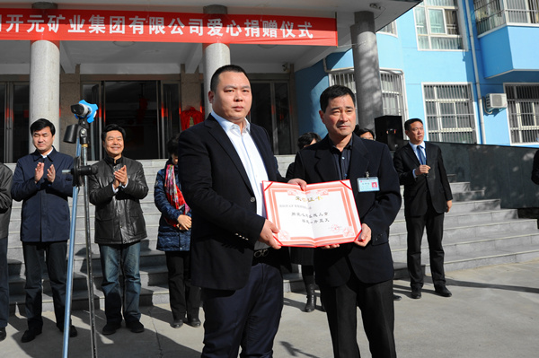 洛陽開元礦業(yè)集團90余名職工代表也參加了此次捐贈活動,親身感受了公司作為負(fù)責(zé)任企業(yè)的擔(dān)當(dāng)感。該公司經(jīng)過十余年的發(fā)展,業(yè)務(wù)涵蓋礦山開發(fā)、酒店服務(wù)、金融投資和房地產(chǎn)開發(fā)等領(lǐng)域,旗下?lián)碛腥Y和控股子公司14家,資產(chǎn)規(guī)模逾10億元,在冊職工550余人。公司本著“以人為本,誠信經(jīng)營,多元發(fā)展,和諧雙贏”的經(jīng)營宗旨,以礦山開發(fā)、礦產(chǎn)品購銷、進出口貿(mào)易為依托,逐步擴大國內(nèi)礦山企業(yè)投資規(guī)模,著力打造有色金屬開采加工、進出口貿(mào)易、金融投資、酒店服務(wù)與管理等為一體持續(xù)健康發(fā)展的綜合性、國際化企業(yè)集團。