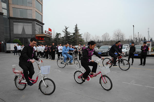 3月24日下午迪尼斯開元店在停車場舉行了一場面目一新的春季運動會。此次運動會主要有行政部、后廚餐飲部、客房部、工程部、保安部等各部人員參與角逐,比賽項目主要有單車慢行、三人四足、趣味接力和拔河等。