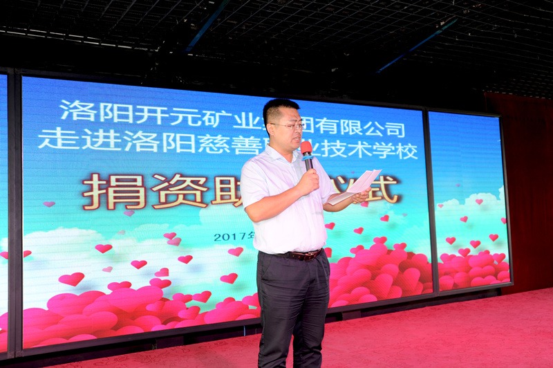上午10點20分儀式開始,集團總經(jīng)理助理叢萬通代表公司發(fā)表講話,他重點談到:近年來,開元礦業(yè)集團在董事長許明月的帶領下,強力推進企業(yè)發(fā)展的同時,積極開展各項社會公益活動,在慈善愛心公益領域不遺余力,先后為汝陽縣馬溝小學,洛寧縣東宋鎮(zhèn)郭村小學、兒童福利院、興華鎮(zhèn)中心小學,宜陽縣紅斑狼瘡重病小女孩、文物保護維護等捐款捐物累計超過100萬元。作為洛陽慈善總會理事單位,得知洛陽慈善職業(yè)技術學校部分學生還沒有統(tǒng)一的職業(yè)西服后,集團立即聯(lián)系校方,為學校捐贈60套校服西裝,價值9000余元;希望同學們將社會各界的關愛轉化為學習的動力,積極回報社會。
